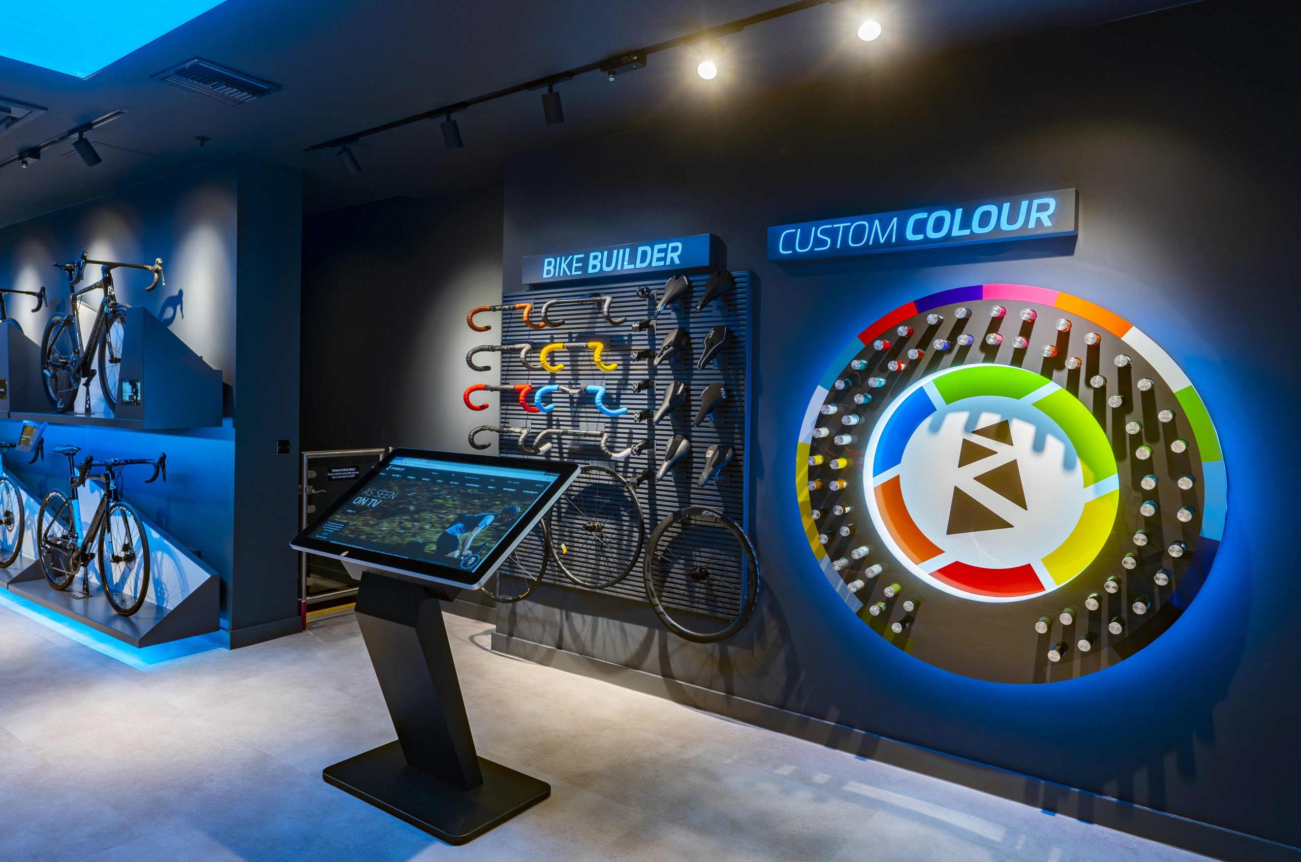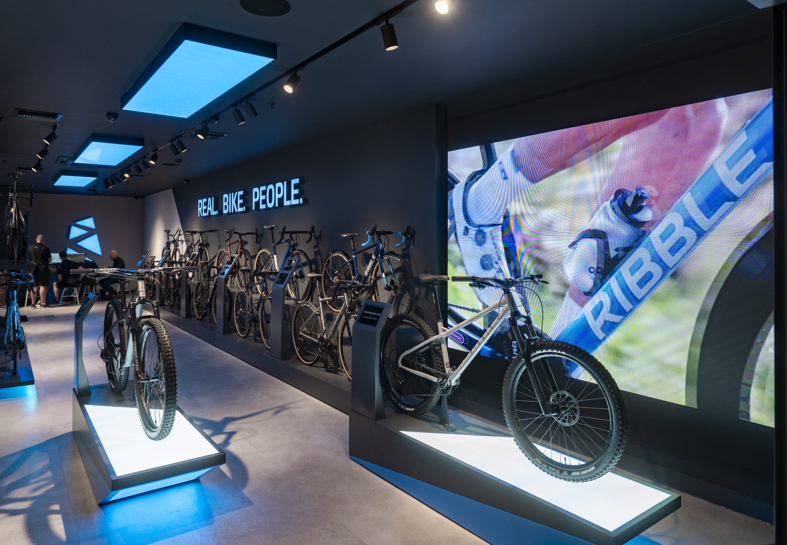Ribble Cycles are expanding their retail presence across the UK & returned to us after their flagship store build to provide the Visual & Audio solutions, again partnering with Stamp Design to create the spectacular instore experience. We created a custom 3.2 x 2.4 meter LED Screen solution in our Pixite® Indoor Series Video Wall with a fine 2.5mm pitch allowing for a superb fidelity & resolution.